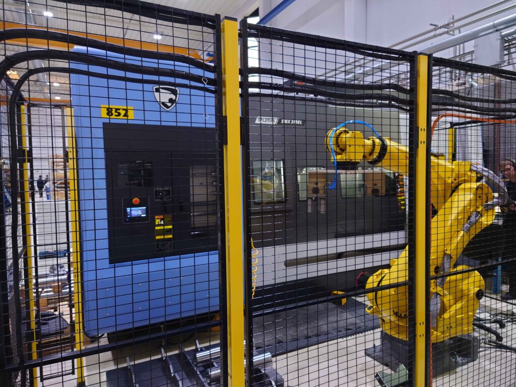 I år bestilte GMV en Fanuc robot type R-2000iC med løftekapasitet 270 kg og rekkevidde 2655 for å kople denne sammen med SMX 3100 og derved skape en helautomatisk produksjonscelle.